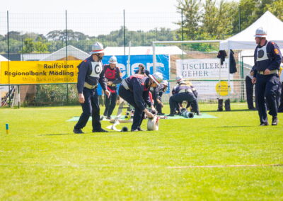 Die Gruppe Münchendorf 2, die ihr Wettkampfdebüt an diesem Tag feierte, meisterte mit einer durchwegs guten Zeit von 55,99 Sekunden einen guten Löschangriff, mit viel Pech durch zwei offene Saugschläuche sowie einer unwirksam angelegten Ventilleine war ein Platz unter den Top 5 leider nicht möglich.