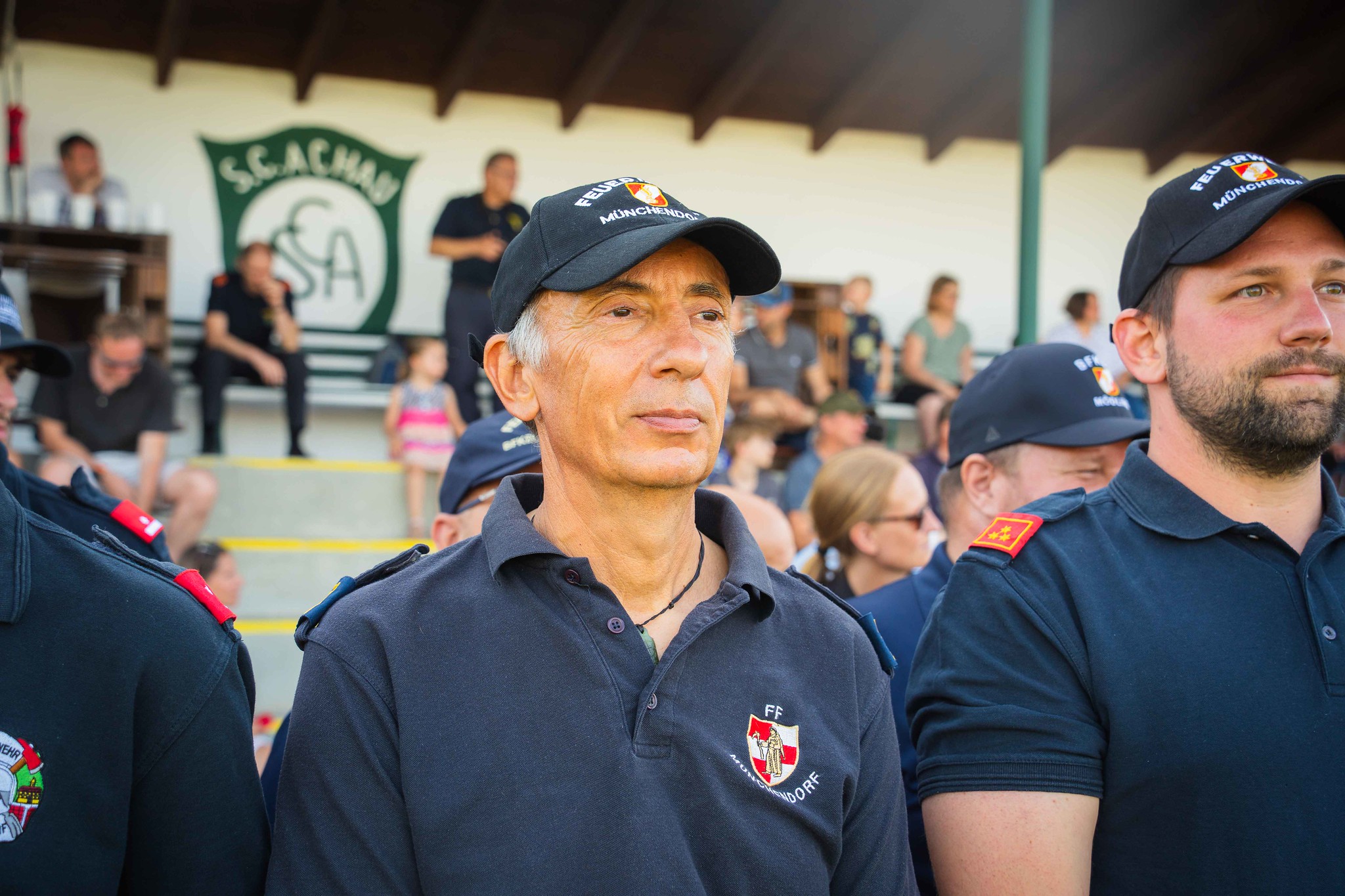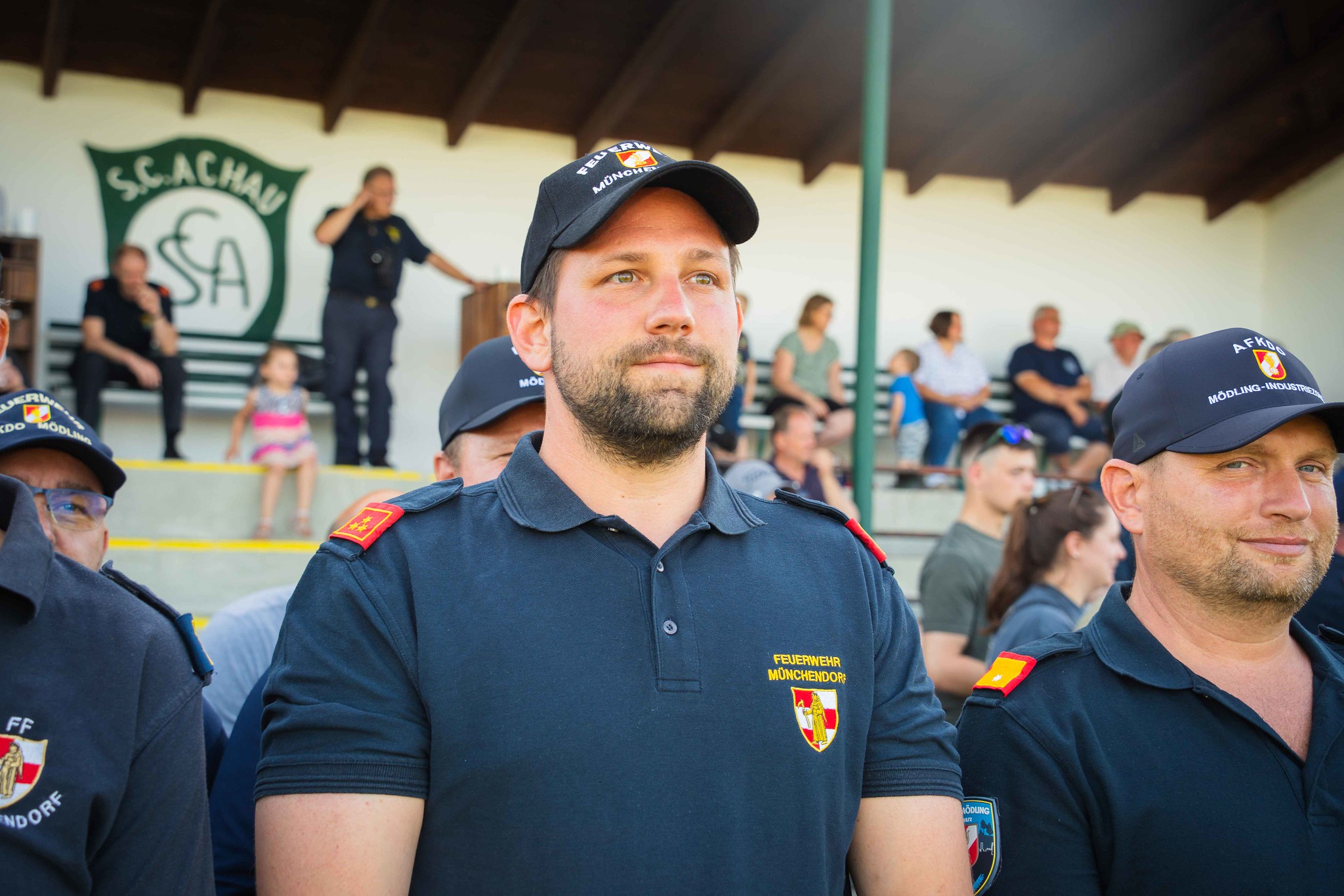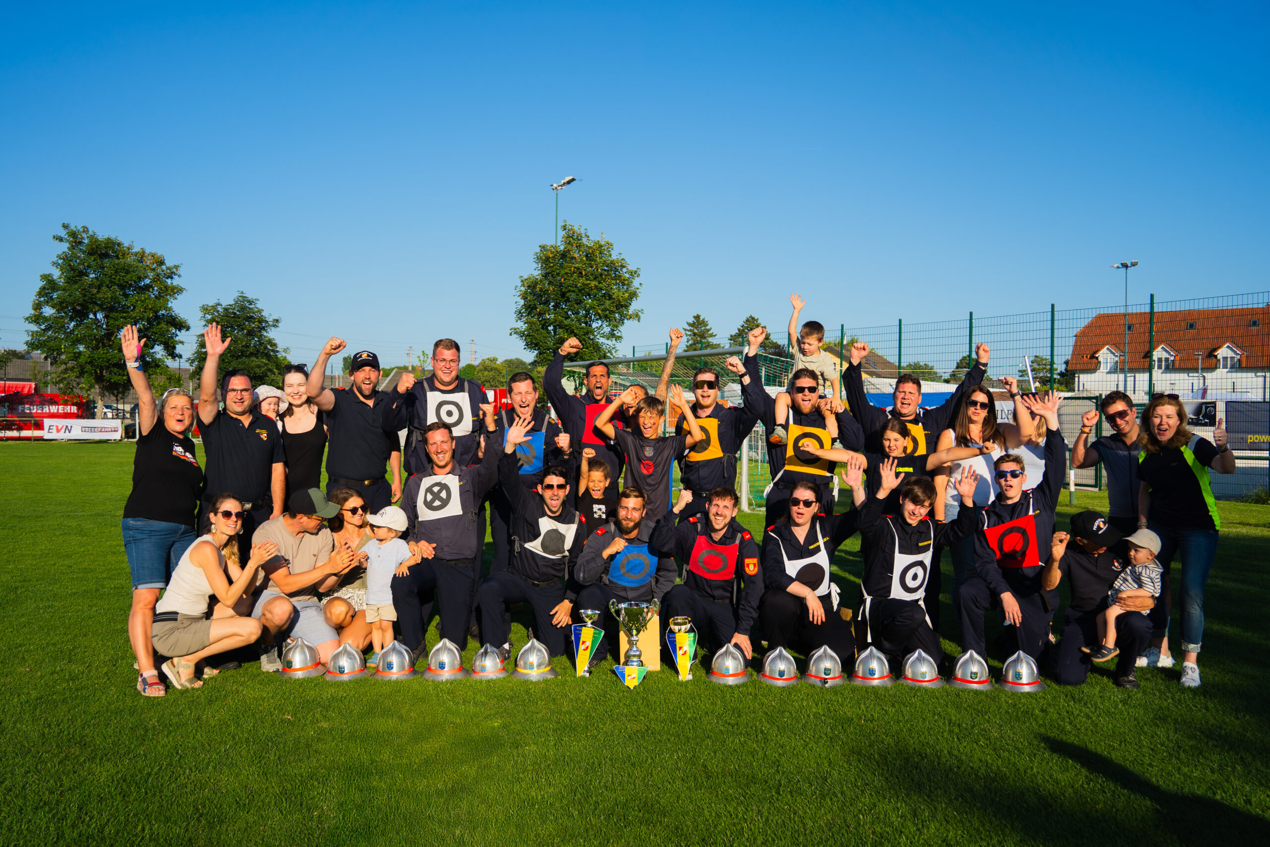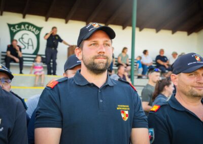Bei ausgelassener Stimmung vor Ort am Sportplatz, wobei der SC Achau gemeinsam mit der Feuerwehr Achau ein schönes Fest organisierte, ließen die Kameraden der Feuerwehr Münchendorf den Tag gesellig ausklingen.