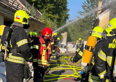 Im Zuge der Übung kam noch eine weitere Aufgabe hinzu und so erweiterte sich das Übungsszenario um einen weiteren Brandherd im nächstgelegenem Keller. In beiden Fällen waren es echte, aber kontrollierte Brandherde, die einen realen Löscheinsatz erforderten, was im Sinne des Übungszwecks das beste Training für die Einsatzkräfte war.