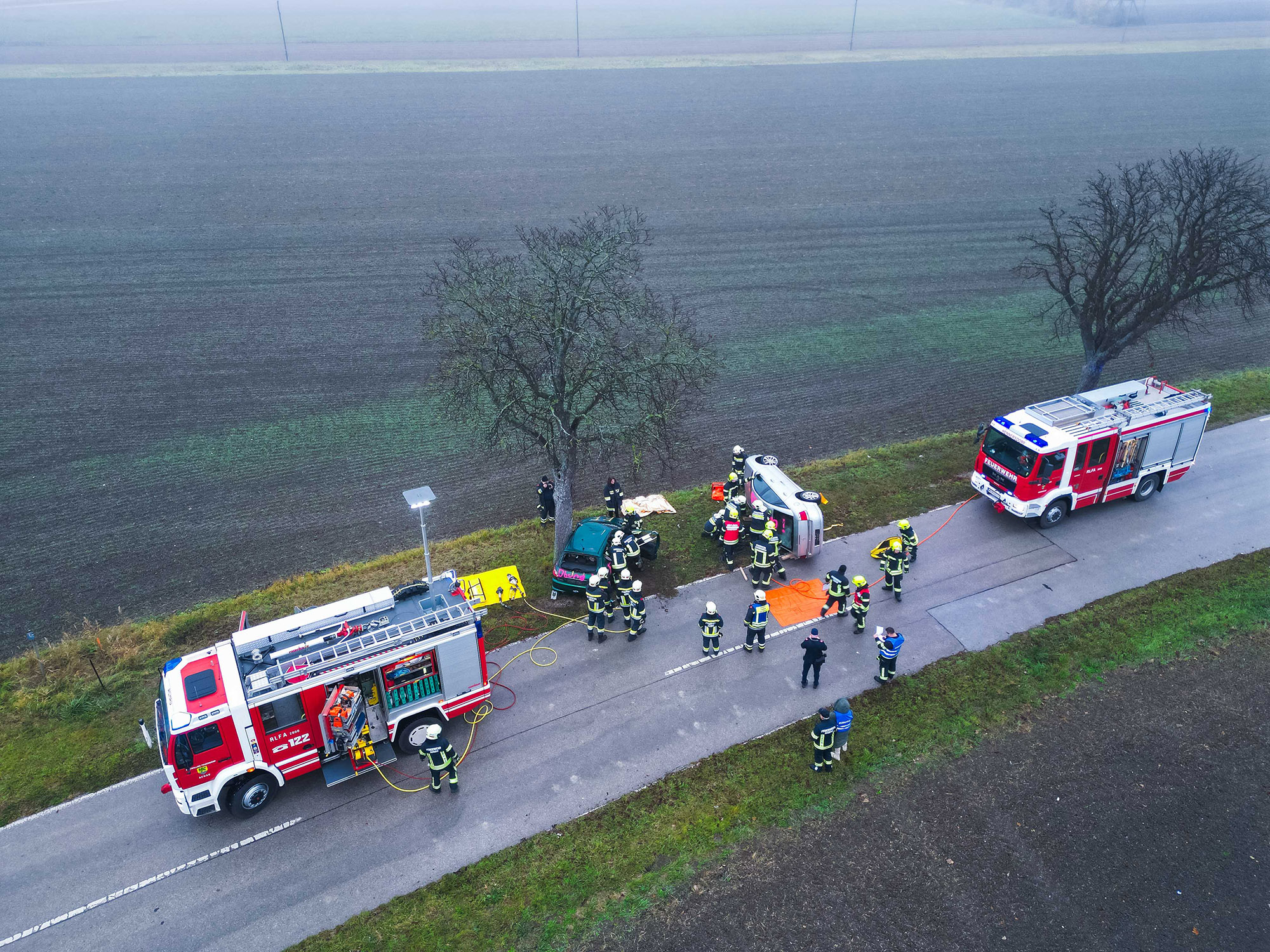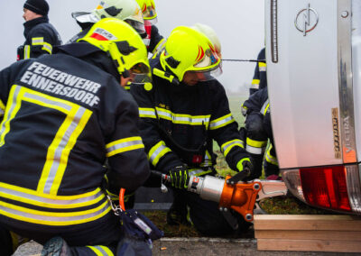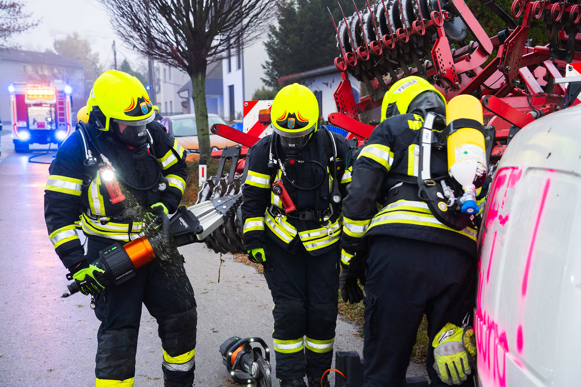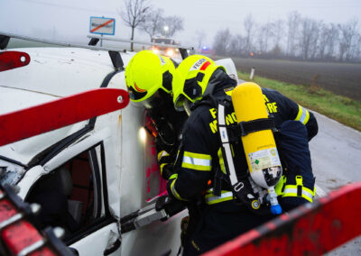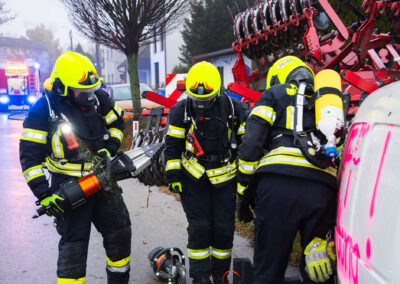 drohten giftige Stoffe in Form von Dünger auszutreten. In diesem Fall musste die Menschenrettung und das Auffangen des Schadstoffes mittels Umluft-unabhängigem Atemschutz durchgeführt werden.
