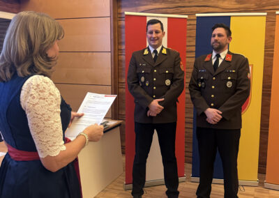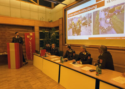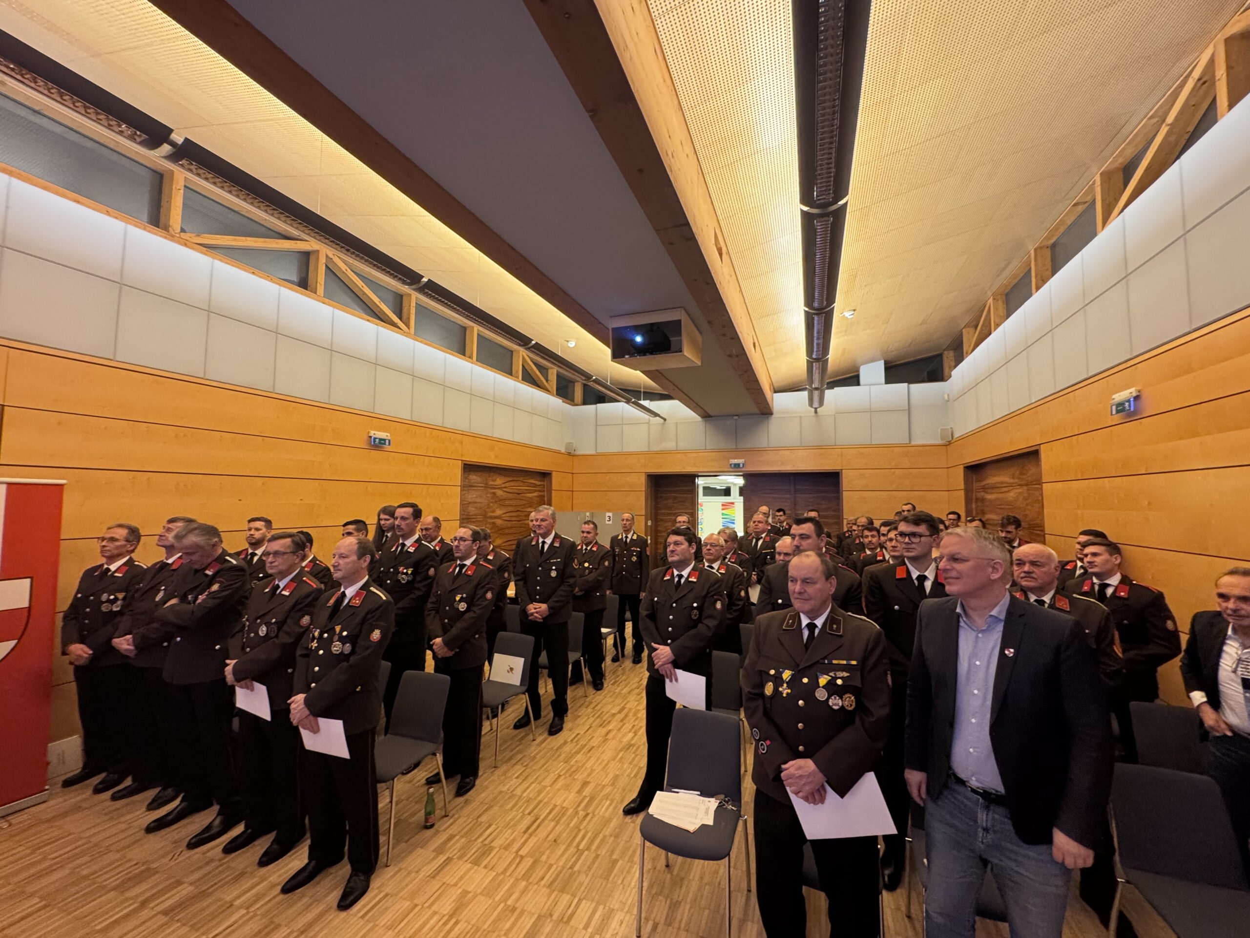 Zu Beginn der Mitgliederversammlung gab das Kommando vor den Augen der anwesenden Ehrengäste, Bürgermeisterin Doris Kirstorfer, Vizebürgermeister Roland Wallner, Bezirksfeuerwehrkommandant Christian Giwiser, Abschnittsfeuerwehrkommandant Christian Fröhlich und Abschnittsverwalter Thomas Pascher, einen Leistungsbericht des abgelaufenen Jahres 2025 ab. Des Weiteren wurden zahlreiche Ehrungen, vor allem für den Einsatz beim Hochwasser 2024, vom Kommando durchgeführt.