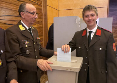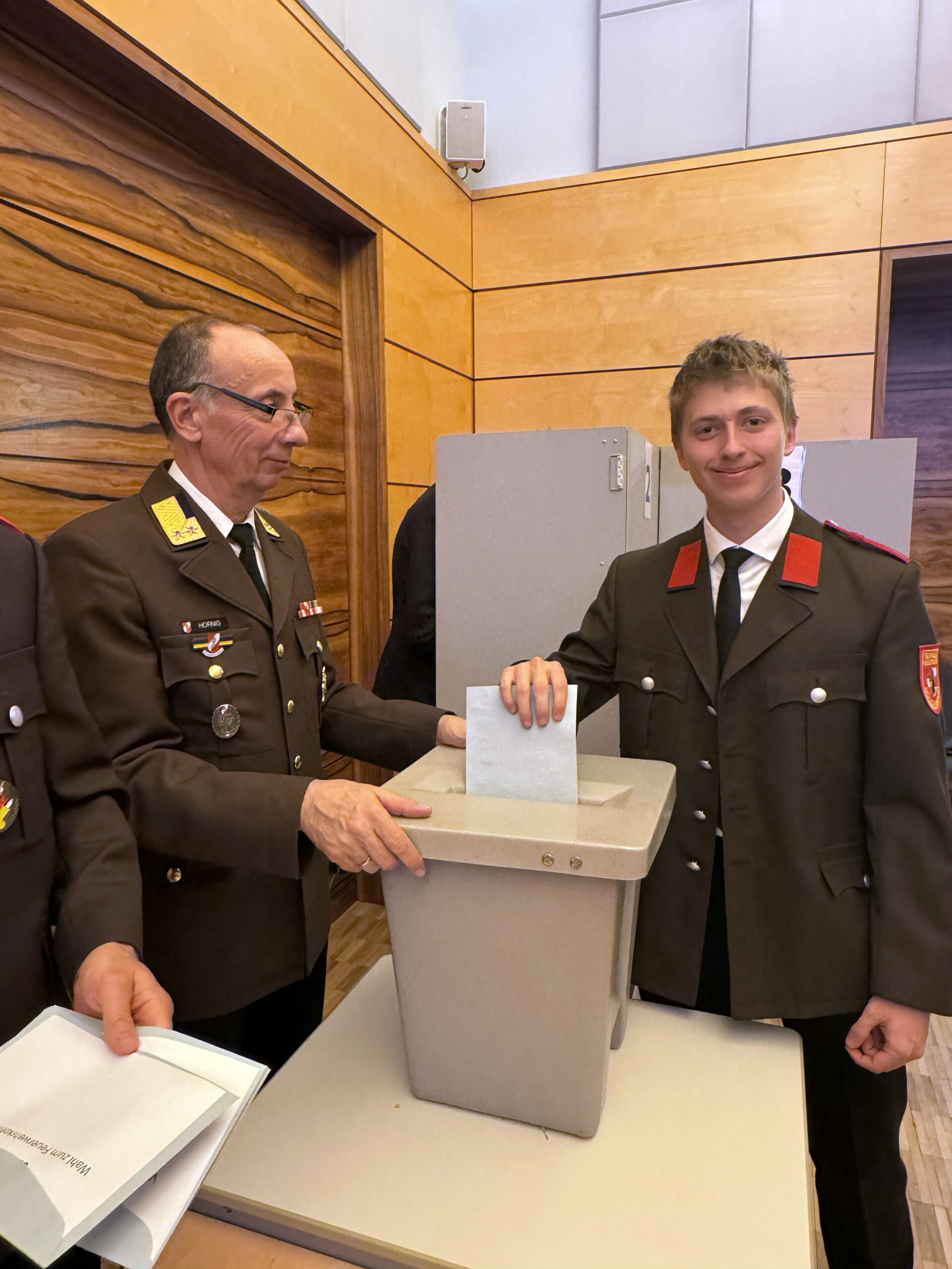 Von 61 abgegebenen Stimmen fielen 61 gültige Stimmen auf Armin Lahner, für die Wahl zum Feuerwehrkommandanten, der die Wahl auch annahm. Zugleich erfolgte das Ergebnis der Wahl des Stellvertreters. Von 61 abgegebenen Stimmen fielen unglaubliche 59 auf Robert Rainer.