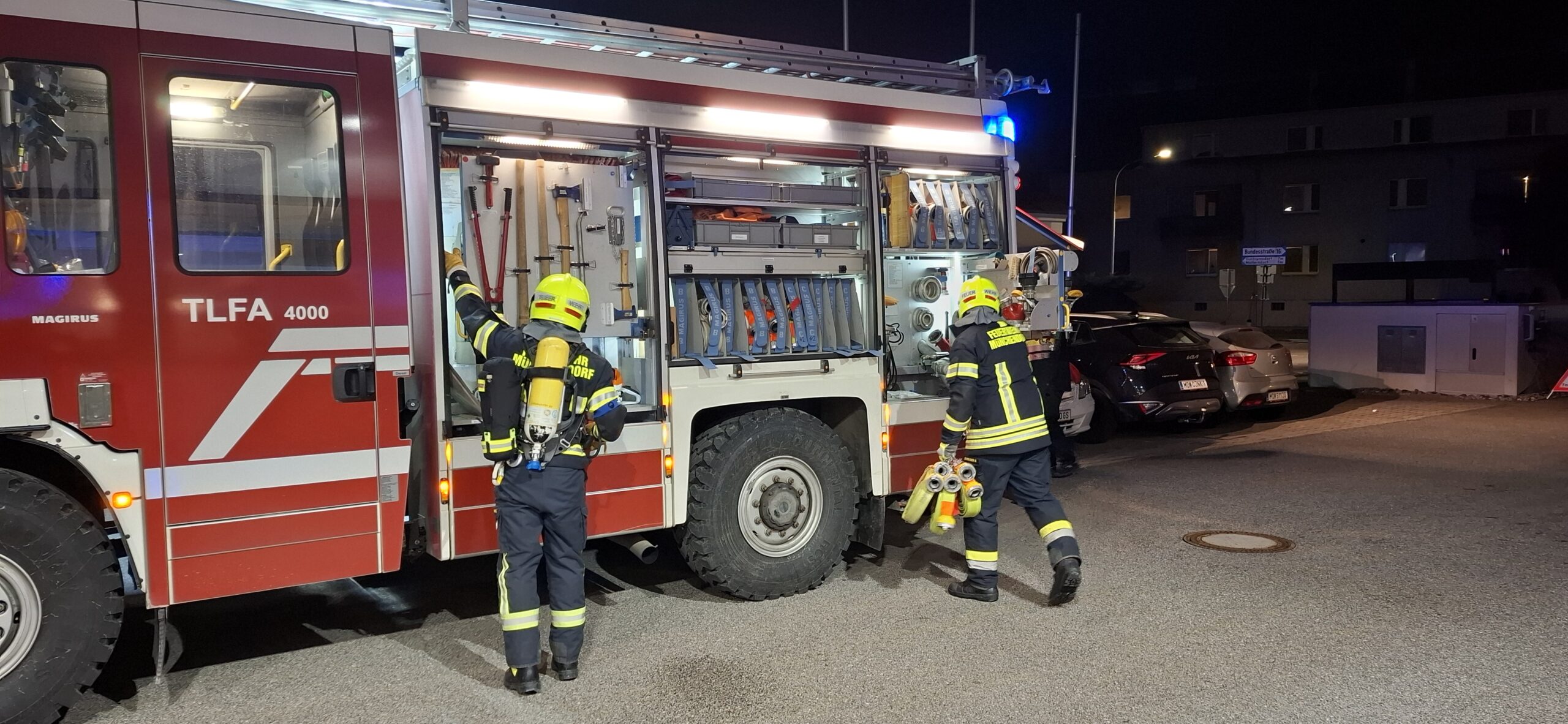 – die Löscharbeiten unter Atemschutz